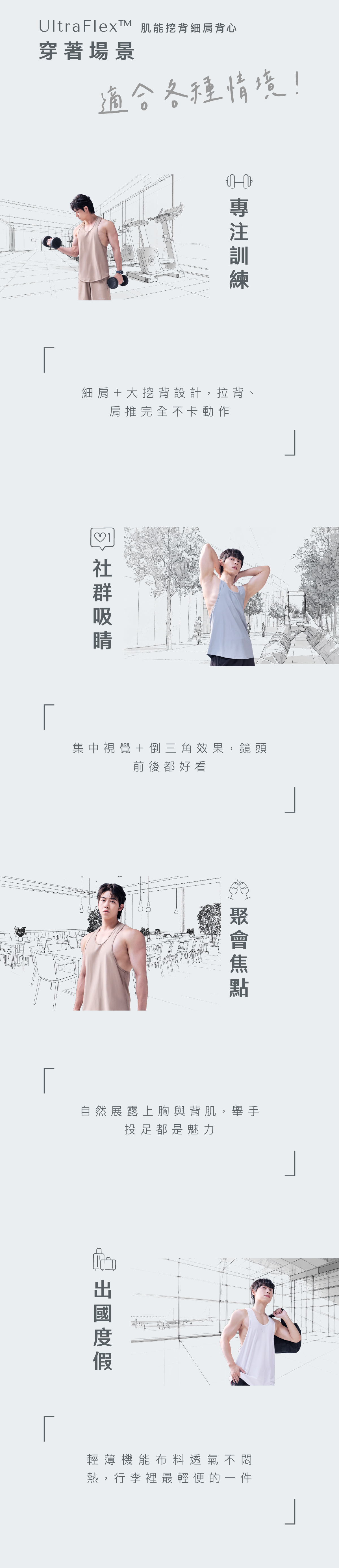 大面積釋放背肌線條,給背闊肌最有感的伸展空間,動作更自在,線條更霸氣。